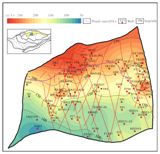 - Formation water has both positive and destructive effects on oil and gas reservoirs. The increasing direction of the TDS is consistent with the direction of hydrocarbon migration, but the caprock and high salinity fluids from overlying strata and adjacent regions controlled the TDS distribution. The high TDS and reductive ion-proportionality coefficients reveal that the sealing condition of the Ordovician strata in the Halahatang depression is beneficial to the accumulation and preservation of oil and gas reservoirs.