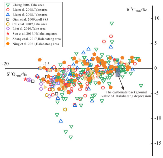 - Liu, C.G.; Guo-Rong, L.I.; Zhu, C.L.; Liu, G.Y.; Lu, Y.F. Geochemistry Characteristics of Carbon, Oxygen and Strontium Isotopes of Calcites Filled in Karstic Fissure-Cave in Lower-Middle Ordovician of Tahe Oilfield, Tarim Basin. Earth Sci. J. China Univ. Geosci. 2008, 33, 377–386. [Google Scholar]