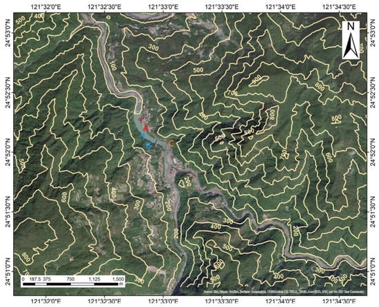 The plan of the study was to use the acquisition image data at 10 a.m. of the selected study area in cloudless weather for a standard image format. Since the optical scanning operations are performed simultaneously, the image data will be operated to meet the requirements of a scanning height of 15 m above the ground and FOV of 40° to obtain the ground resolution as 0.4 m images. At least 72 time intervals were recorded (locations are refer points A, B, and C in Figure 1) for the time-series data, which were used as an element to identify image features and make a prediction in future steps.