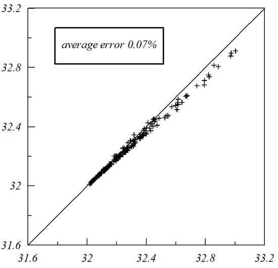 Part of the regression error is plotted in Figure 6. The average error is about 0.07%. The Y-axis is the real value of turbidity, and the X-axis is the value predicted by regression.