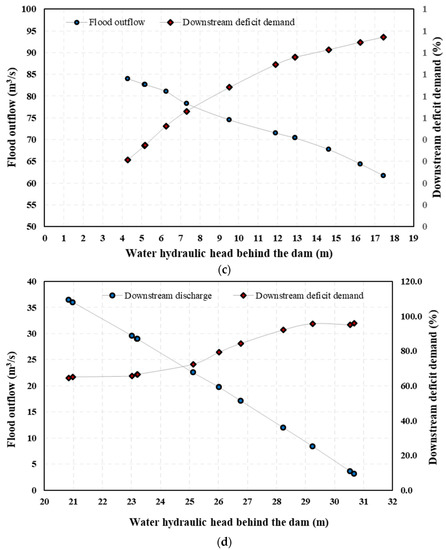 | Outlet/Weir Type | Water Hydraulic Head behind the Dam (m) | Outlet/Weir Characteristics |