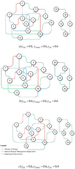 Feasible states for the disputes among the Ministry of Energy, the National Disaster Management Organization, and the Department of Environment.