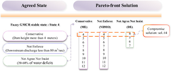 54]. Despite the application of GMCR in previous water resources management and water engineering studies, to the best of our knowledge, the compatibility of developed optimal detention basins with regional standards has not been addressed in the literature. As a result, coupling GMCR with the earlier mentioned hybrid multi-objective optimization model would lead to a novel stochastic conflict resolution optimization model for the practical, compatible, and optimum design of detention basins and their outlets.