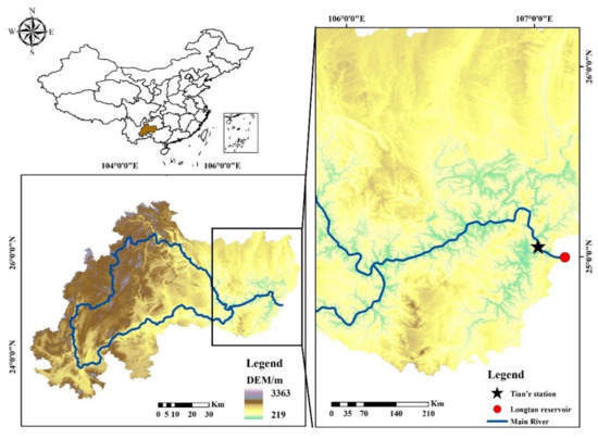 Tian’e Hydrological Station is located 15 km downstream of Longtan Reservoir and was established in May 1959. The adjustment of flood stage and FLWL in this study are directly adopted from Tian’e station hydrological data, including 53-year long series of daily rainfall, daily runoff, and flood data from 1960 to 2012.