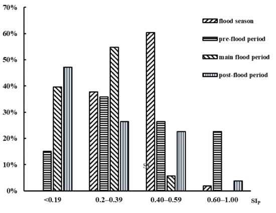As suggested by Walsh and Lawler [51], the seasonality index classes are shown in Table 1. Therefore, it is indicated that rainfall and runoff are evenly distributed throughout the flood season when 0.19, and there is variability in the distribution of rainfall and runoff during the flood season which needs to be staged when > 0.19 in this study.
