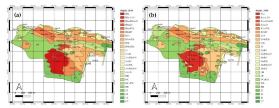Habitat maps of Dejtár area in 2010 (a) and 2020 (b).