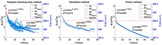 According to Petras [], each recession curve can be divided into segments and modelled with Maillet’s equation. In this way, each segment is defined with the initial discharge Q0 and the recession coefficient α:
