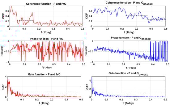 Coherence, phase and gain function of integral volume changes in Red Lake and discharges at Opačac Spring.