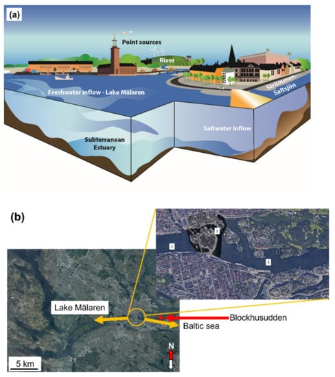 - County Administrative Board of Stockholm, Stockholm, Sweden, Monitoring Data for 2018 for Water Formation Strömmen, Blockhusudden, Part of Saltsjön. Available online: https://miljobarometern.stockholm.se/vatten/kustvatten/strommen/ (accessed on 23 January 2021).