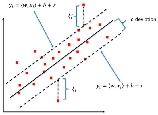 The support vector regression (SVR) model has a small number of support vectors, and thus is known to be less sensitive to outliers. Ref [33] developed support vector regression that adopts a -insensitive loss function into the support vector machine. Support vector regression is estimated using the function shown in Equation (4) [32].