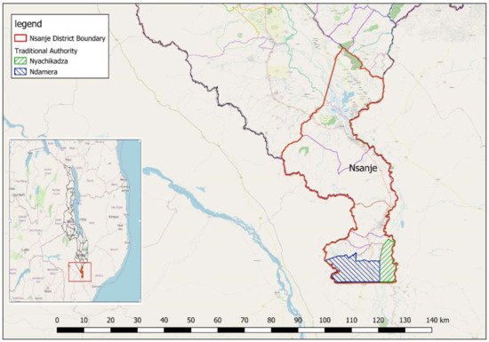 The Nsanje district of Malawi lies in the Lower Shire River valley. It is surrounded by Mozambique on the south and the Shire River to the north and the east. Nsanje is the poorest of the total 28 districts in Malawi and is virtually dependent on the government and Non-Governmental Organisations (NGOs) [72]. Most income in the district comes from smallholder farming, which is almost entirely dependent on rain-fed agriculture. This renders the district vulnerable to climate variability, particularly drought and flooding, with devastating effects on crop production. Livestock production and fishing are other economic activities that sustain the lives of many [73]. In response to the incessant floods and resulting deaths in Nsanje district, the Government of Malawi (GOM) declared Traditional Authority (TA) Nyachikadza a flood-prone area and barred people from staying in the area [71]. However, the people of TA Nyachikadza have refused to be relocated. The government, in response, prohibited other service providers from delivering social services, including public health in the TA, as a way of forcing the community to relocate, thereby compounding the community’s vulnerability [71].