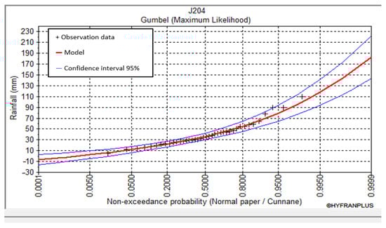 The maximum 24 h rainfall depths for different return period of J204 station.