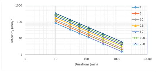 In order to determine the parameters of the IDF curves, see [14,15,33].