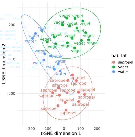 - Van Der Maaten, L. Accelerating t-SNE using tree-based algorithms. J. Mach. Learn. Res. 2015, 15, 3221–3245. [Google Scholar]