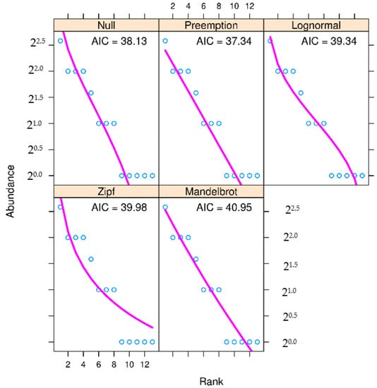 - Su, Q. A general pattern of the species abundance distribution. PeerJ 2018, 2018, e5928. [Google Scholar] [CrossRef]