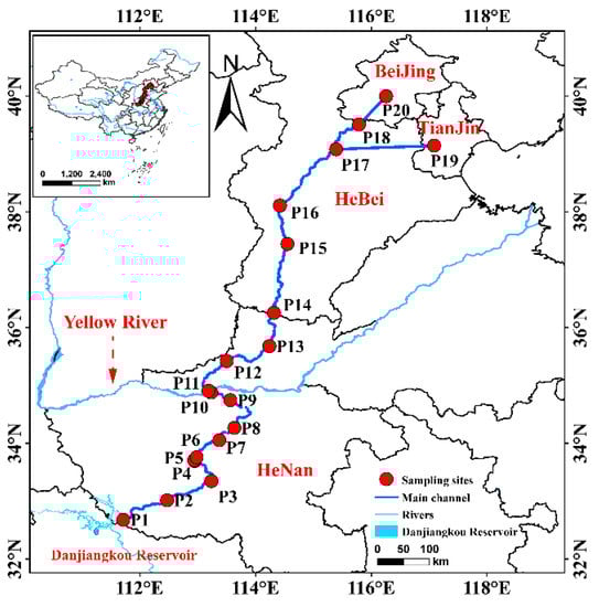 Sketch map of sampling sites in the main route of the middle route of the South-to-North Water Diversion Project in China.