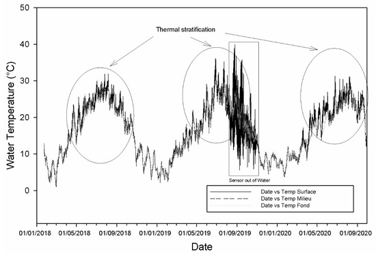 3.1.2. Thermal Analysis of the Water Masses of the Thomas Pond