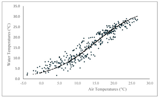 - Webb, B.W.; Clack, P.D.; Walling, D.E. Water-air temperature relationships in a Devon river system and the role of flow. Hydrol. Process. 2003, 17, 3069–3083. [Google Scholar] [CrossRef]