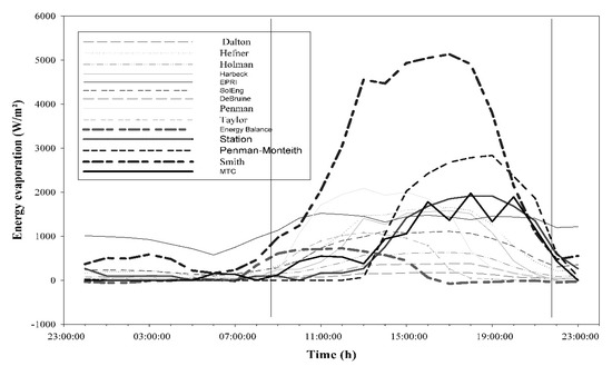 3.2. Estimation of Evaporation and the Energy Consumption Induced by This Process