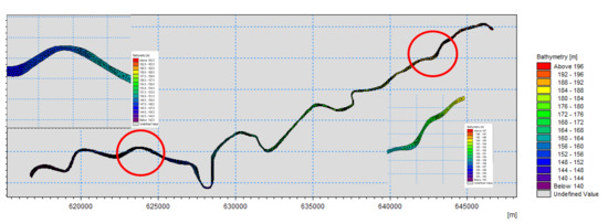 - River bed roughness: controlled by Manning coefficient, which was verified to be 41 m(1/3)/s.