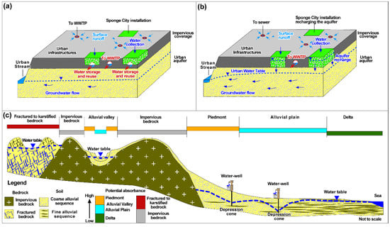 - Jin, M.; Lancia, M.; Tian, Y.; Viaroli, S.; Andrews, C.; Liu, J.; Zheng, C. Hydrogeological criteria to improve the Sponge City of China. Front. Environ. Sci. 2021, 9, 700463. [Google Scholar] [CrossRef]