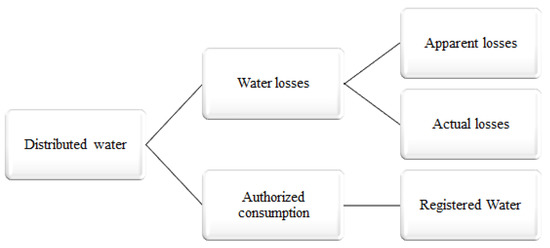 Schematic diagram of water losses in distributed water.
