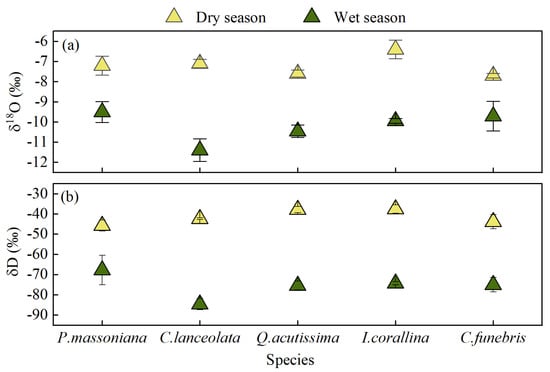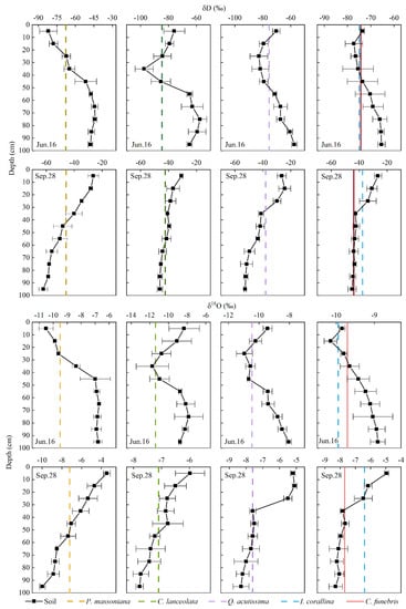 - Wang, J.; Fu, B.; Lu, N.; Zhang, L. Seasonal variation in water uptake patterns of three plant species based on stable isotopes in the semi-arid Loess Plateau. Sci. Total Environ. 2017, 609, 27–37. [Google Scholar] [CrossRef]