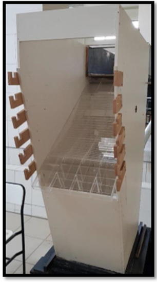 To observe the screen inclination effect on the screen performances, wooden sockets which allow the user to adjust a screen inclination in the range of 0 and 30 degrees (0, 5, 15, 20, 25, 30 degrees) were mounted on the intake body section walls (Figure 2). During the experiments, three different water discharges, 2.4, 5.56, and 7.96 L/s, were used to observe the incoming flow effect on both WCP and SRE.