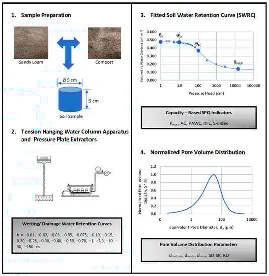 Flow chart of the procedural steps to estimate capacity-based indicators of SPQ and pore distribution parameters.