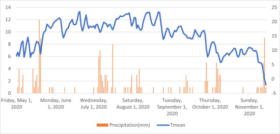 - Széles, A.; Huzsvai, L. Modelling the effect of sowing date on the emergence, silking and yield of maize (Zea mays L.) in a moderately warm and dry production area. Agron. Res. 2020, 18, 579–594. [Google Scholar]