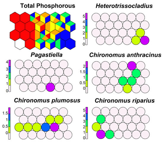 SSOM carried out with TP as the external variable allowed a separation of morphotaxa indicating different trophic status: C. anthracinus colonized waters less eutrophic than C. plumosus, but C. thummi type was the group most tolerant to high TP; Heterotrissocladius, Pagastiella, Corynoneura, and Psectrocladius preferred sites with low TP (Figure 17). Figures not included here are available at the University of Milan.