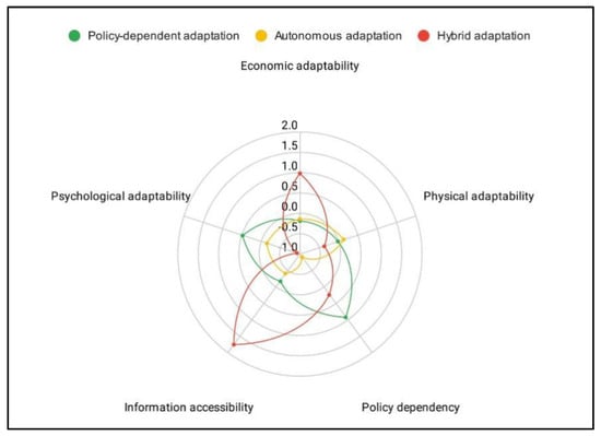 Average dimension scores of the three landslide adaptation types.