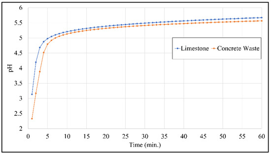 pH plot of limestone and concrete waste.