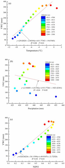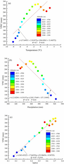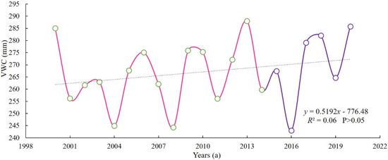 4.1. Research Results of VWC and Analysis of Meteorological Influence Factors