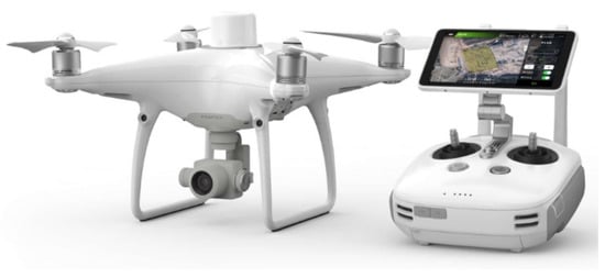 UAVs for aerial photography can be selected considering their weight, size, and performance depending on the purpose. UAVs that can consider camera image quality, topographic coordinate recognition, RTK, and safety are necessary to construct precise topographic data in consideration of topographic data, buildings, and infrastructure. In this study, we selected the Phantom 4 RTK from DJI as the UAV used for aerial photography, as shown in Figure 2. Phantom 4 RTK can perform mapping using automatic flight and capture images without distortion of the camera during the flight. Moreover, GPS can also be calibrated by receiving the location information of the virtual reference station (VRS) for hundreds of electronic reference points in real-time during aerial photography.