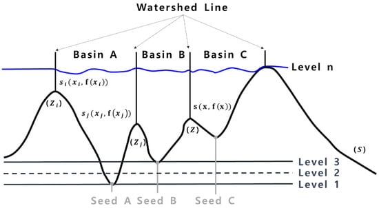 The first method begins by discovering a downstream path from each pixel of the image to a local minima. The area minimum is defined as a point that does not have a downstream path in the vicinity of the thing. One point above the digital surface is defined as , . Here, shows the two-dimensional position of point. also, represents the elevation of the point. The path above the surface can be defined as the sequins of the dots. If two dots and are on the river path, , for , is always true. In other words, a point of belongs to a minimum if there is no downstream path starting from the there. One catchment area is defined as a set of pixels whose paths to all downstreams end at the same minimum altitude. Each collection area represents a region of the divided image. There are no general rules there to uniquely define the paths downstream on the digital surface. On the other hand, its successive counterpart is well determined by calculating local gradients.