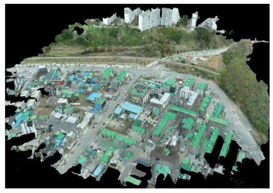 Unmanned aerial vehicles (UAVs) have been rapidly developed and integrated in several areas, including civil engineering, agriculture, disasters, and logistics, due to the advancement of technologies []. In addition, autonomous UAV flights can be performed without human control, and UAVs can provide images with high spatial and temporal resolution. It is possible to implement precise orthomosaics and high-resolution three-dimensional (3D) models using the aerial photos taken by RGB, multi-spectral, thermal imaging, and light detection ranging (LiDAR) cameras by employing a software built with data collection and image processing technologies [,,,,,,,].
