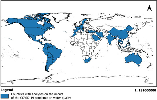 Countries with analyses on the COVID-19 impact on water quality.