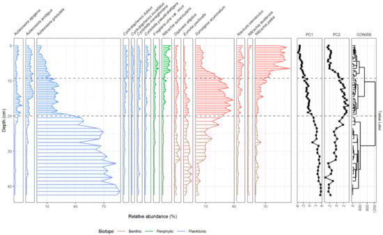 - Battarbee, R.W.; Jones, V.J.; Flower, R.J.; Cameron, N.G.; Bennion, H.; Carvalho, L.; Juggins, S. Diatoms; Smol, J., Birks, H.J., Last, W., Bradley, R., Alverson, K., Eds.; Springer: Dordrecht, The Netherlands, 2005; pp. 155–202. [Google Scholar]