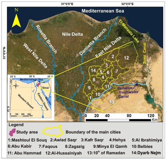 - EEBS. Geotechnical, geological, hydrological and geomorphological properties of soil in El-Sharkia governorate. In Soil Atlas of Egypt; Part Egyptian Education Building Society Publications: Cairo, Egypt, 2004; pp. 459–503. [Google Scholar]
