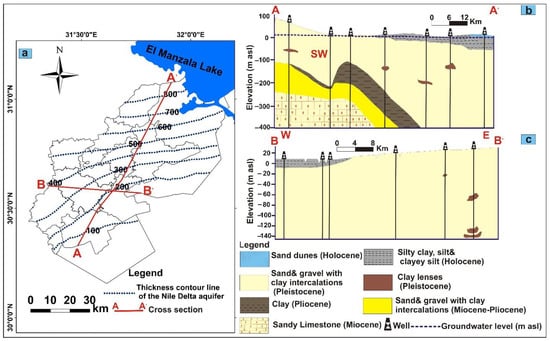 - Sherif, M.M. The Nile Delta aquifer in Egypt. In Seawater Intrusion in Coastal Aquifers: Concepts, Methods and Practices; Book Series: Theory and Application of Transport in Porous Media; Kluwer Academic Publishers: Alphen aan den Rijn, The Netherlands, 1999; Volume 14, pp. 559–590. [Google Scholar]