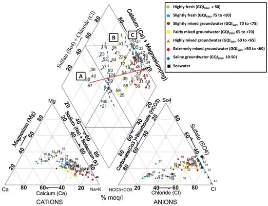 - Giménez-Forcada, E. Use of the Hydrochemical Facies Diagram (HFE-D) for the evaluation of salinization by seawater intrusion in the coastal Oropesa Plain: Comparative analysis with the coastal Vinaroz Plain, Spain. J. Hydro-Environ. Res. 2019, 2, 76–84. [Google Scholar] [CrossRef]