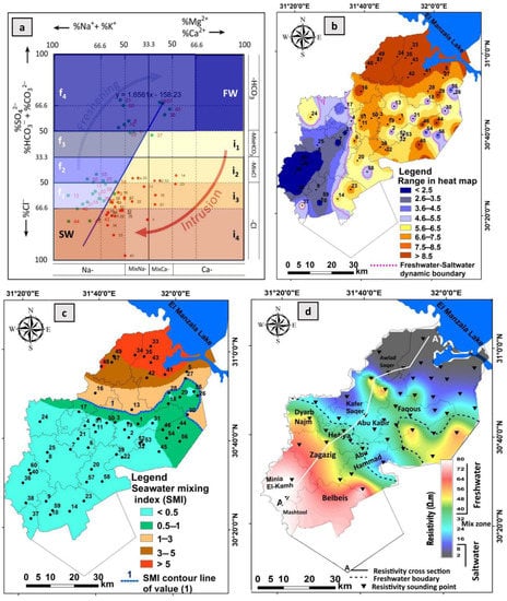 - Nosair, A.M.; Shams, M.Y.; AbouElmagd, L.M.; Hassanein, A.E.; Frayer, A.; Abu Salem, H.S. Predictive model for progressive salinization in a coastal aquifer using artificial intelligence and hydrogeochemical techniques: A case study of the Nile Delta aquifer, Egypt. Environ. Sci. Pollu. Res. 2021, 29, 9318–9340. [Google Scholar] [CrossRef]