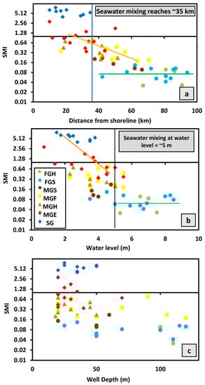 - Tomaszkiewicz, M.; Najm, M.A.; El-Fadel, M. Development of a groundwater quality index for seawater intrusion in coastal aquifers. Environ. Model. Softw. 2014, 57, 13–26. [Google Scholar] [CrossRef]