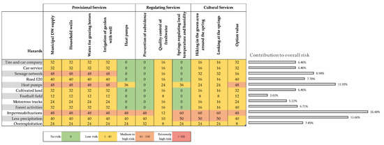 | Cultural services | Activities promoting health, recuperation, or enjoyment through active, immersive, passive, or observational interactions | Hiking in the area around the spring | ![]() |