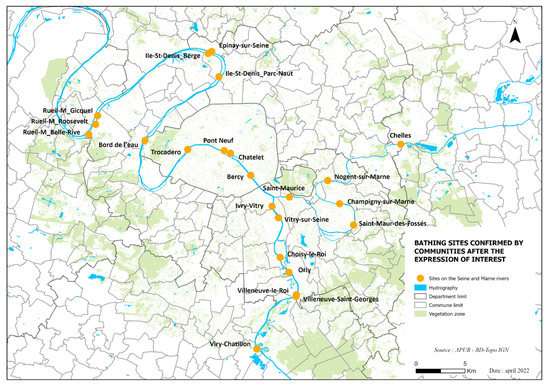 - Sites de Baignade en Seine et en Marne—Héritage JO Paris 2024—Présentation des Sites Issus de la Manifestation D’intérêt. Available online: https://www.apur.org/fr/nos-travaux/sites-baignade-seine-marne-heritage-jo-paris-2024-presentation-sites-issus-manifestation-interet (accessed on 6 February 2022).