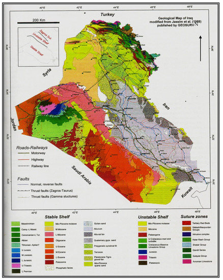 - Jassim, S.Z.; Goff, J.C. Geology of Iraq; Dolin Prague and Moravian Museum: Brno, Czech Republic, 2006; p. 341. [Google Scholar]