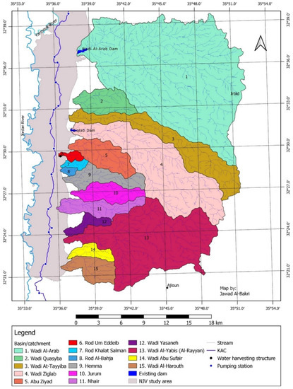- Abu Rumman, G. Characterization of the Hydrological Changes of Jordan River Side Wadis Tributaries Using Remote Sensing and GIS. Ph.D. Thesis, The University of Jordan, Amman, Jordan, 2007. [Google Scholar]