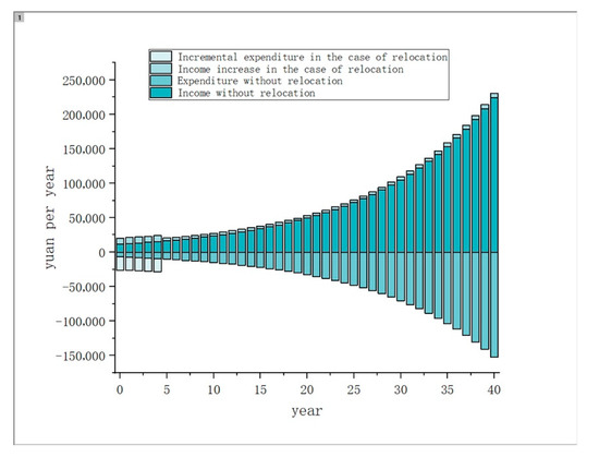 The original calculation parameters can be obtained from the monitoring and evaluation data collected before relocation. Changes in the income and expenditure growth rate from before to after relocation are not significant, because the relocation distance was not very large.