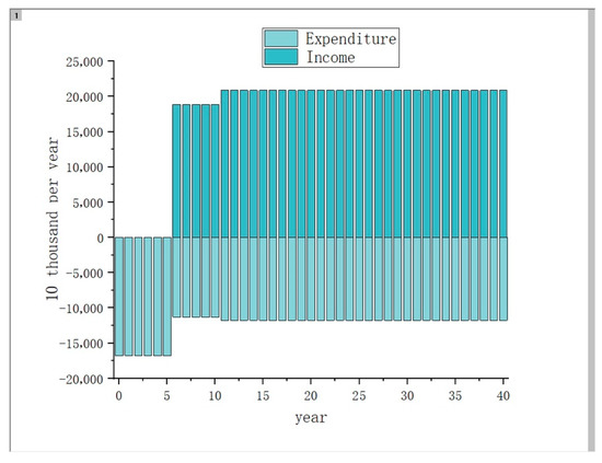 We used the project’s start date of 2015 as the starting point for the cash flow calculations, and the end of the franchise period (2055) as the cut-off point. An income-and-expenditure model was used to measure the changes in the economic indicators of the benefit-sharing subject, obtain cash flow diagrams for the RDP and the developers, and calculate their actual benefits from the project.